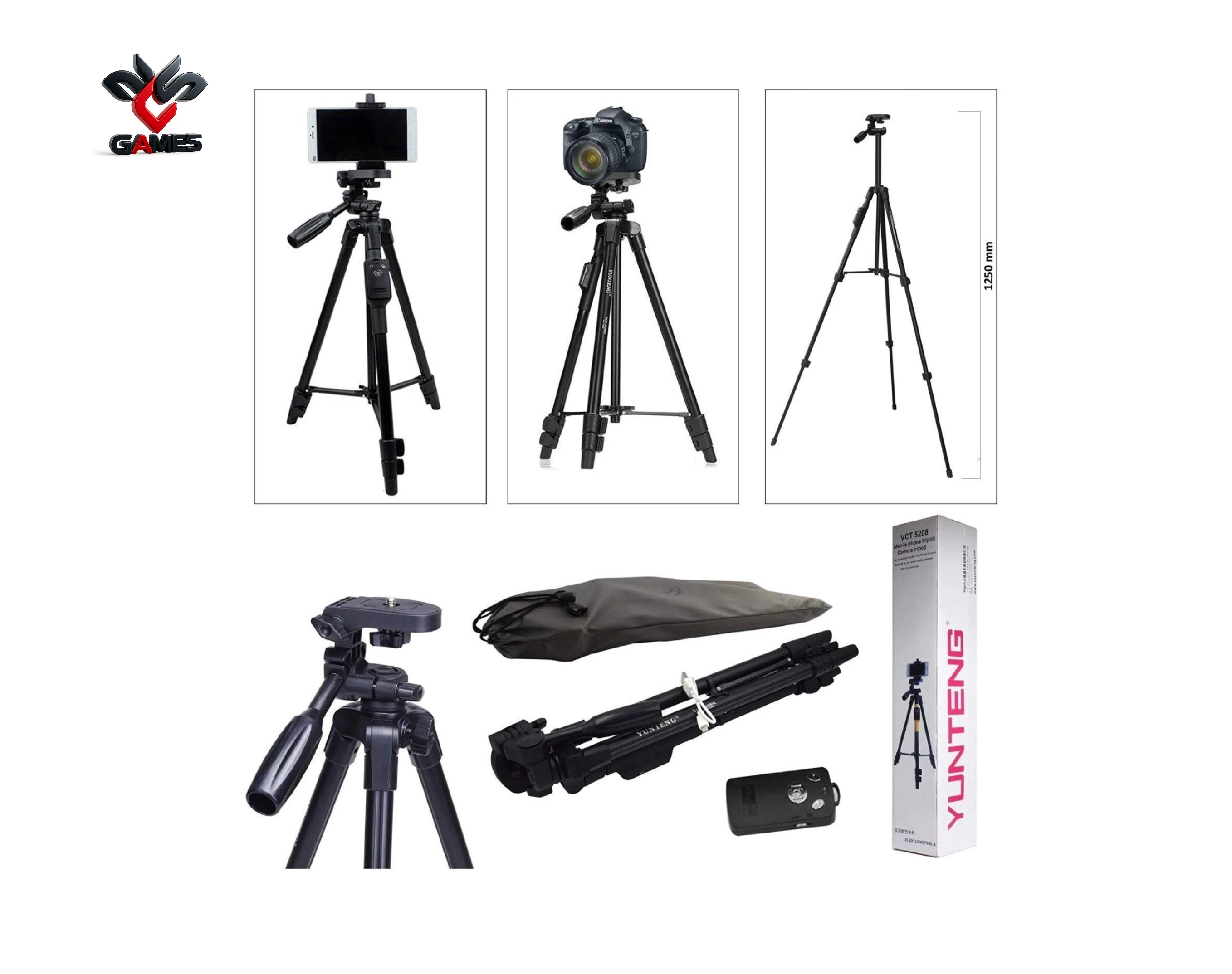YUNTENG VCT-5208 Travel Tripod for Mobile and Camera with Bluetooth Remote Control